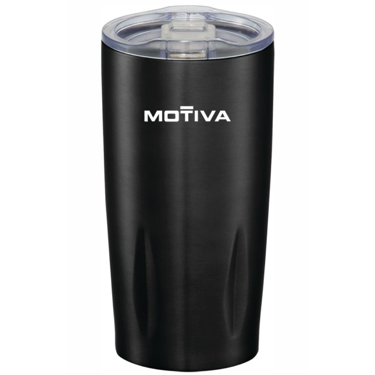 sku: 1044Durable, double-wall stainless steel vacuum construction, which allows your beverage to stay cold for 15 hours and at least 5 hours for hot beverages. The construction also prevents condensation on the outside of the tumbler. Push-on lid with anti-spill slider closure. Wide opening for comfortable filling and pouring. Design features the geometric bottom with grooves. 20oz. Hand wash.