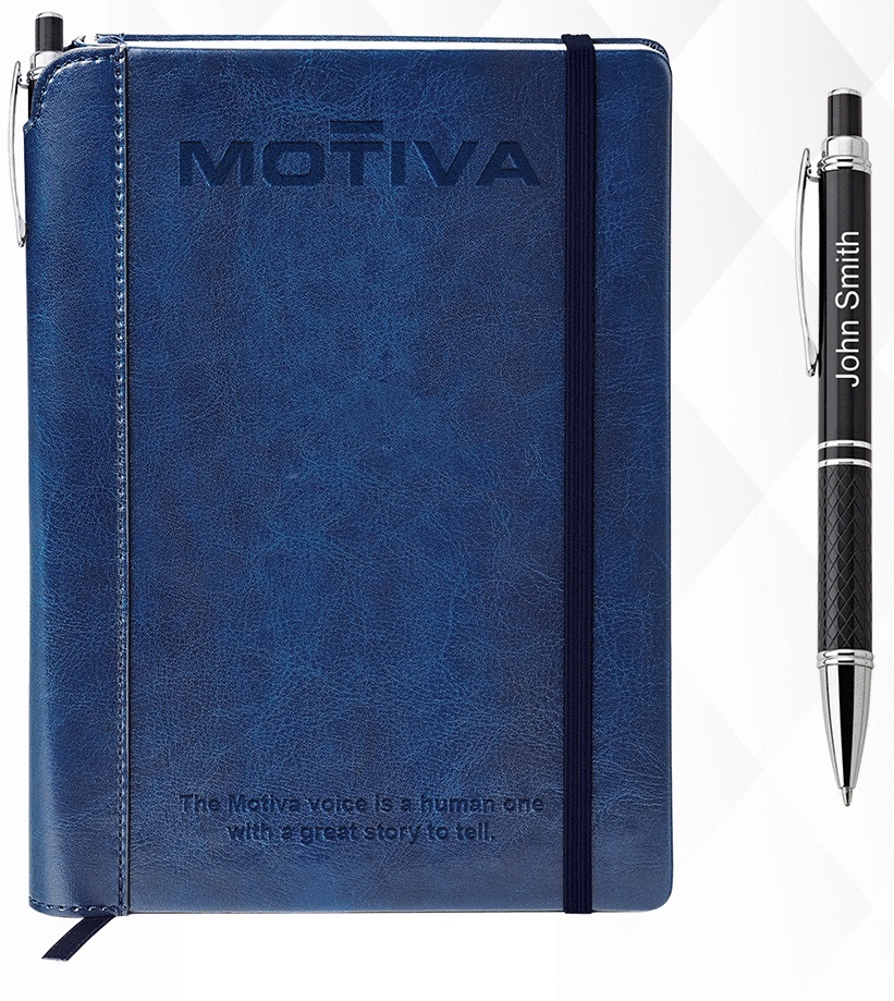 Combo includes a vinyl journal with 192 ivory lined pages (non-refillable) and a black push-action ballpoint anodized aluminum pen.